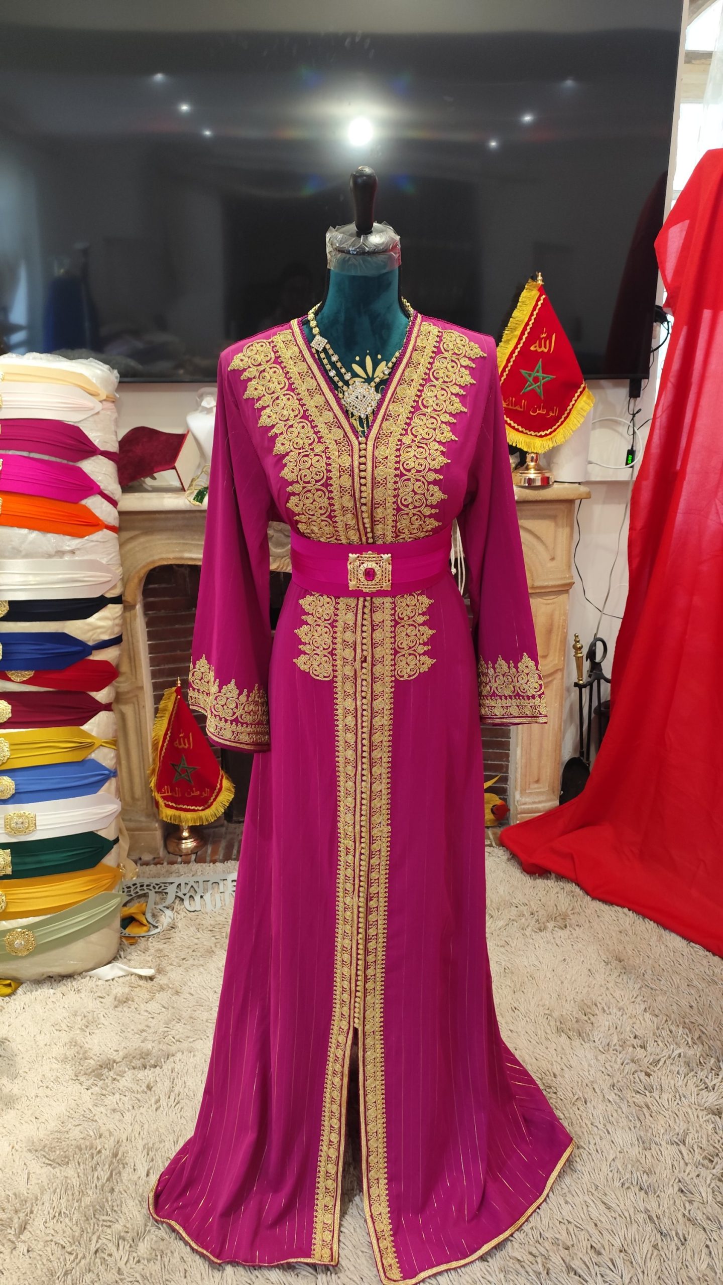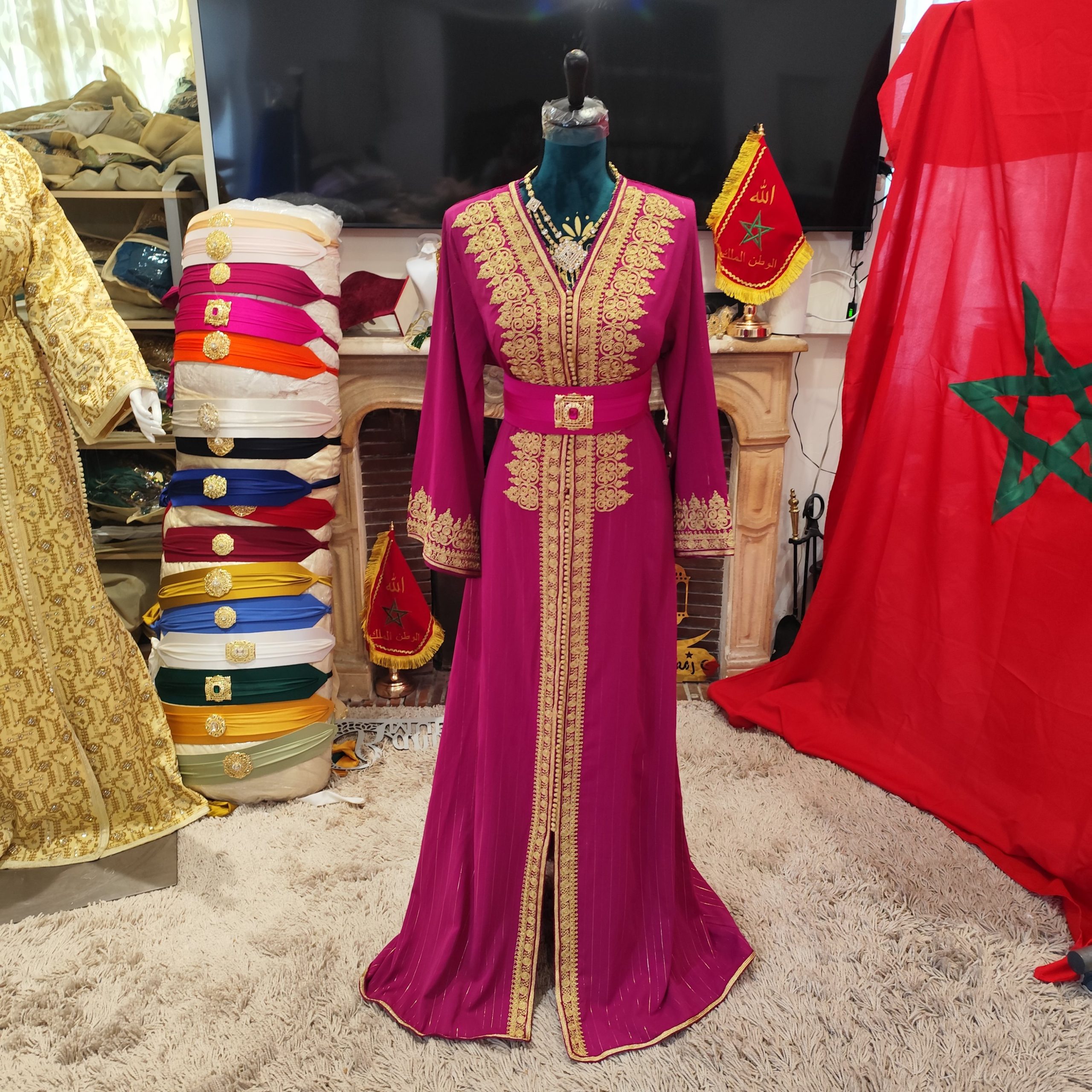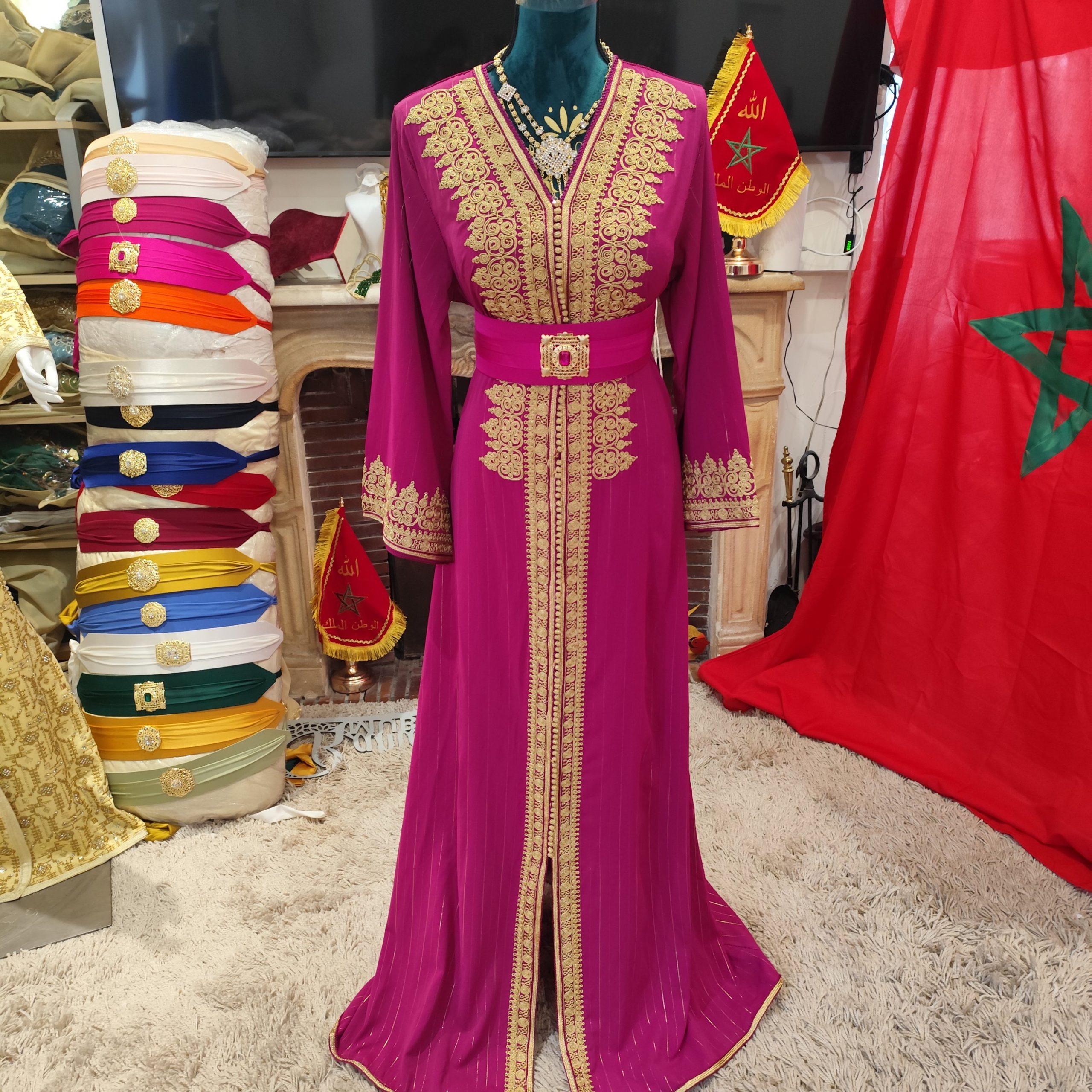 Caftan traditionnel marocain , finement travaillé a la main