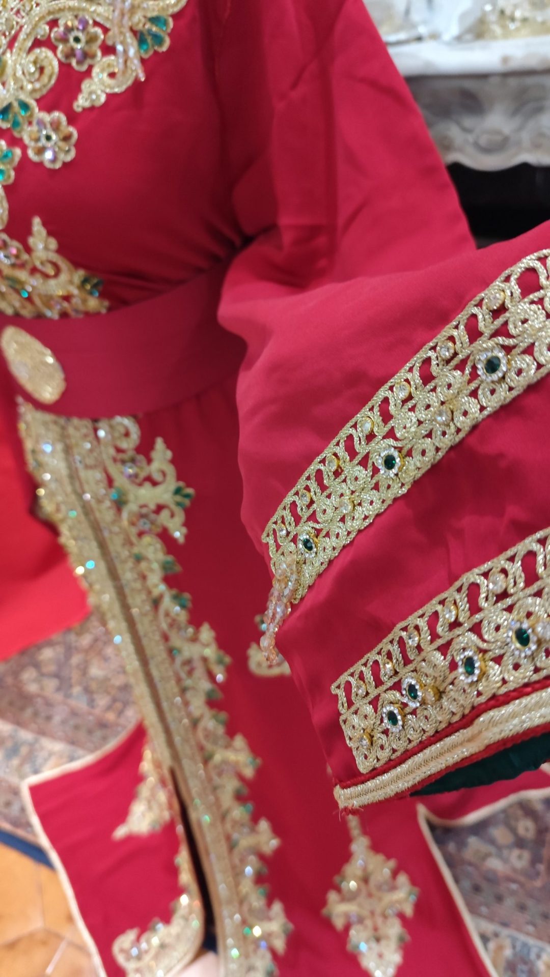Caftan traditionnel marocain , finement travaillé a la main